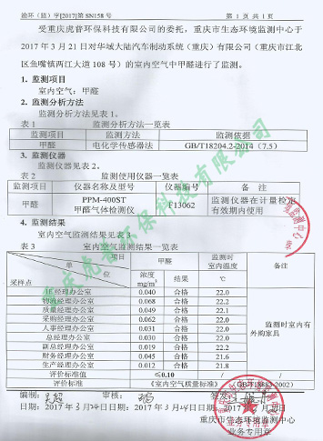 室內污染程度:平均甲醛檢測超標130%倍,平均苯檢測超標60%倍,平均TVOC檢測超標110%倍